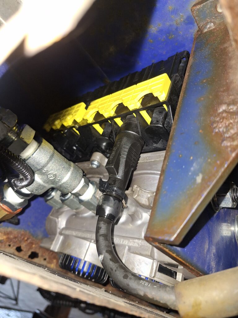 次に、配管とホースとABSセンサーを取り付けます。