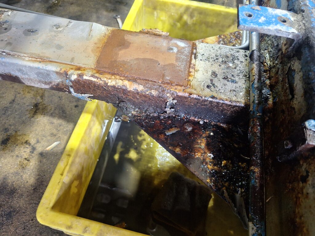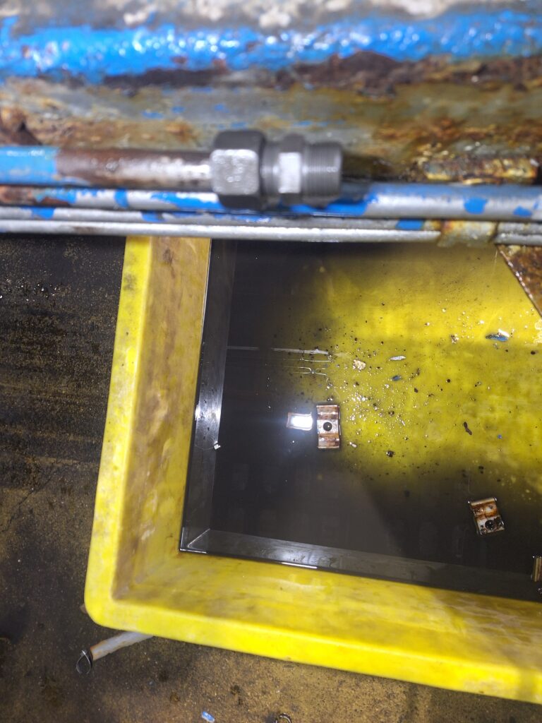 5番フロアの左側のパイプからオイル漏れを確認しました。